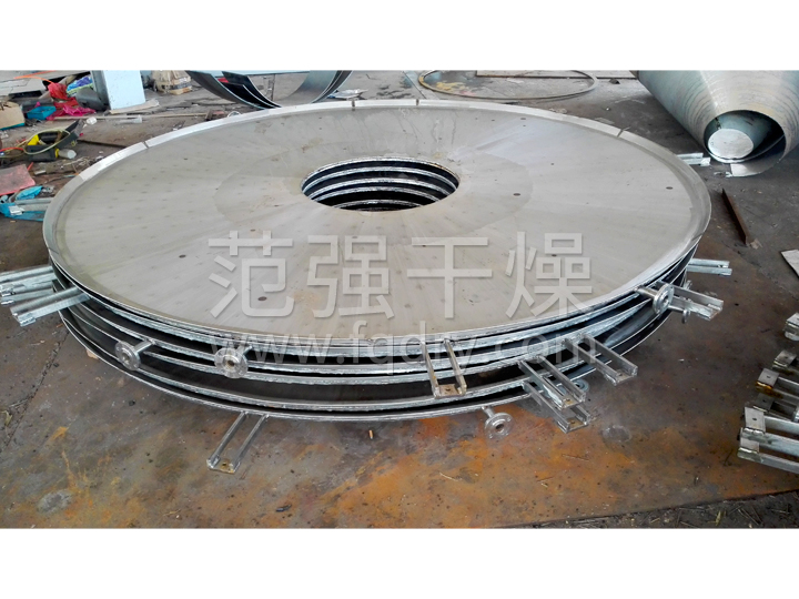 ◎碾滾:對易結塊和需要粉碎的物料,在盤(pán)式連續干燥機適當位置配加碾滾,可以強化傳熱和干燥過(guò)程。